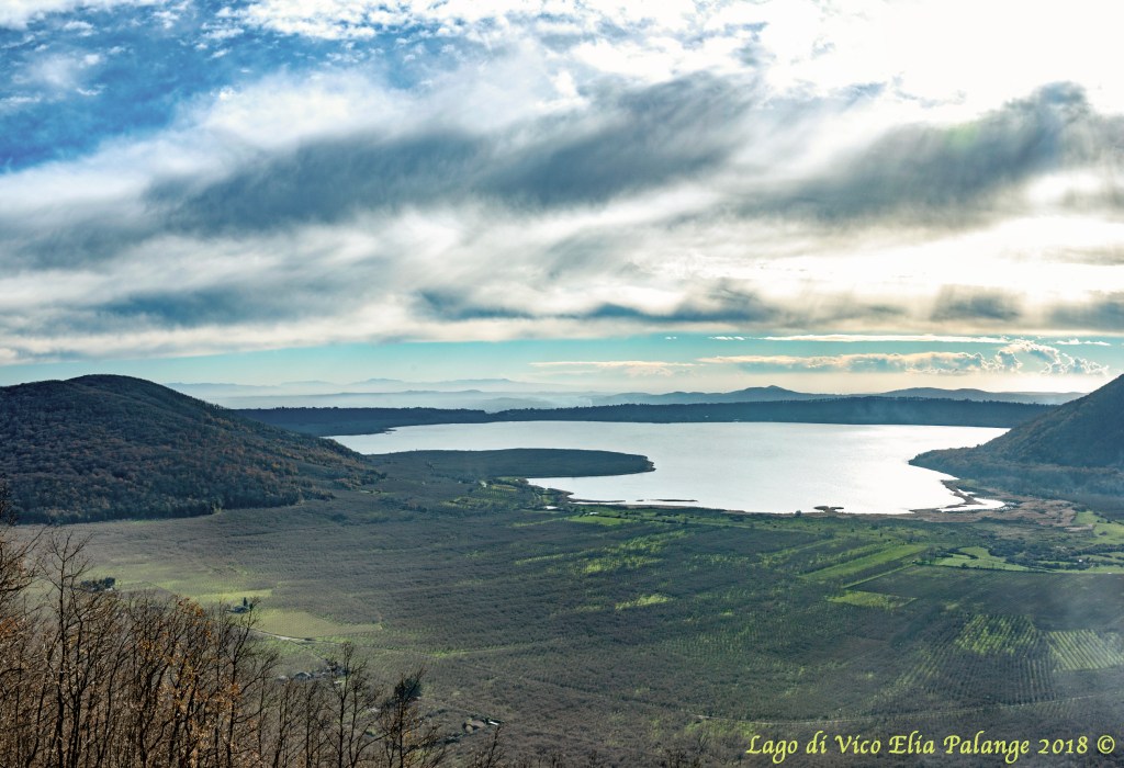 Il monte Fogliano, rinchiomato dal verde tenero dei faggi, premeva il bruno piede verso la chiarezza ancora livida del lago di Vico.